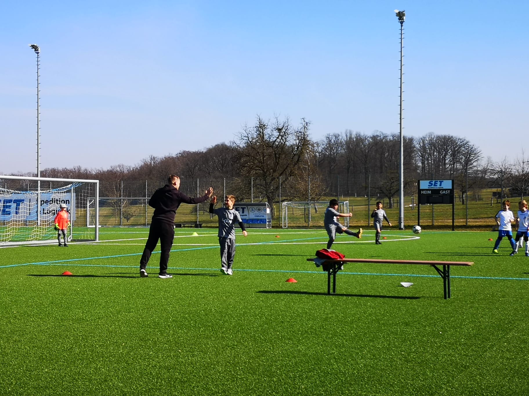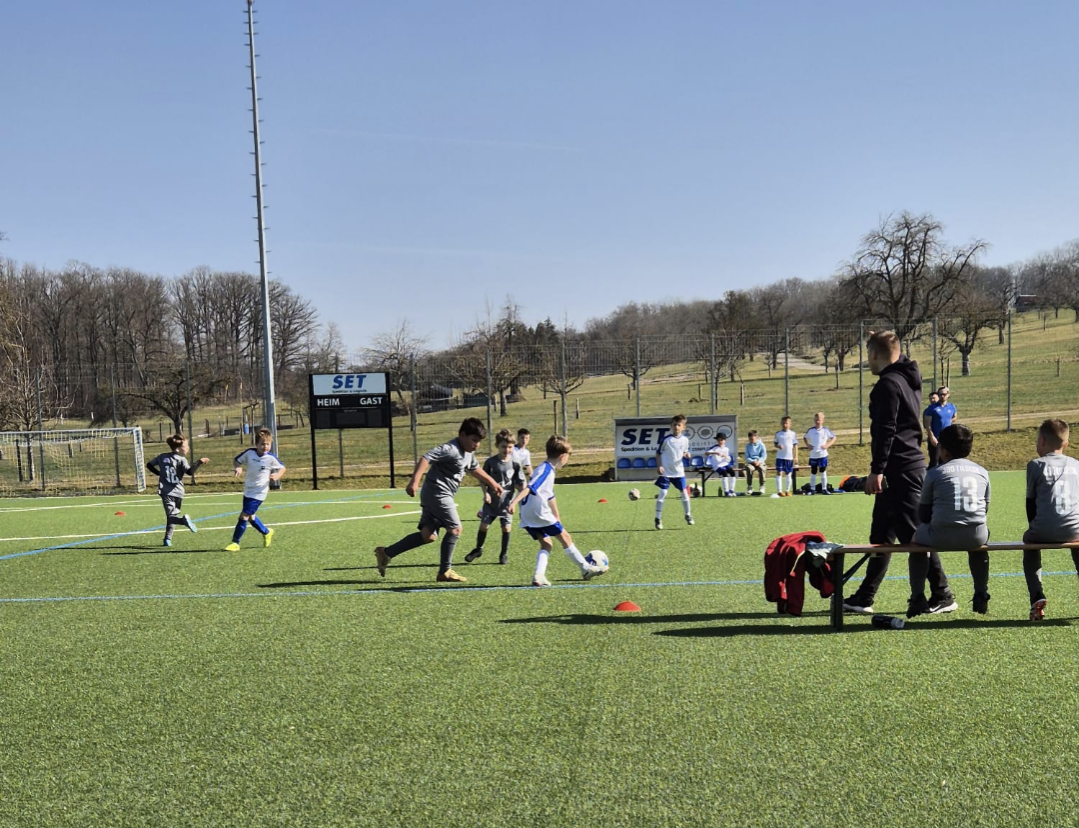 Getrieben von den tollen Temperaturen im März, konnten wir kurzfristig mit unseren Freunden vom TSV Eschenbach ein Freundschaftspiel vereinbaren. Bei bestem Wetter ging es auf 3x 15 Minuten und variierenden Mannschaften zu einem ersten Leistungsvergleich im Modus 5 gegen 5, wodurch wir recht schnell sehen konnten, was wir in den kommenden Wochen noch mehr trainieren müssen. Dennoch hatte jedes Kind sein eigens Erfolgserlebnis, sei es durch das Tore schießen oder dem verhindern gegnerischer Angriffe.
