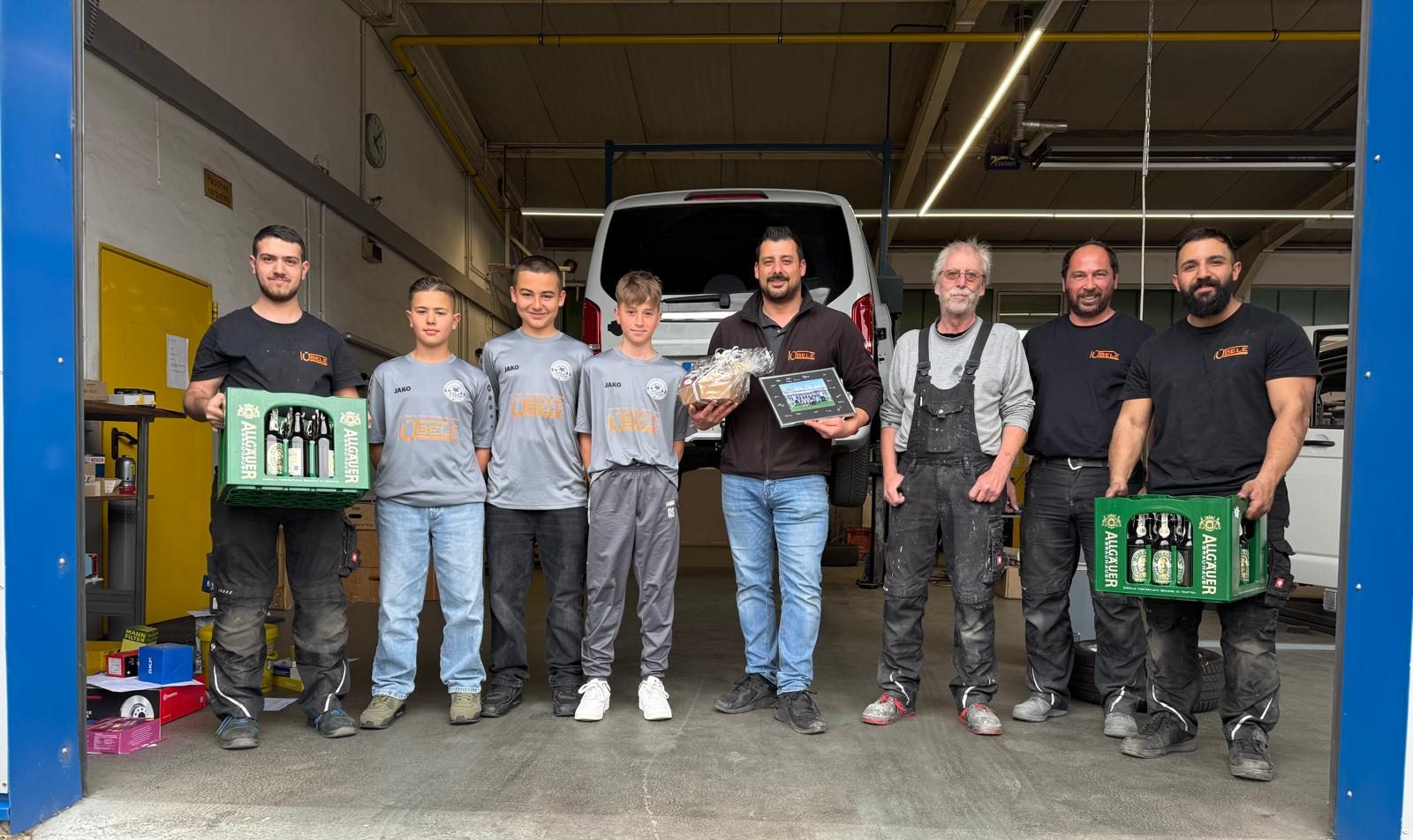 Am 16.05.2025 haben wir uns bei der Firma Übele für die tollen Trikots mit einem „Gruß“ in die Werkstatt bedankt.